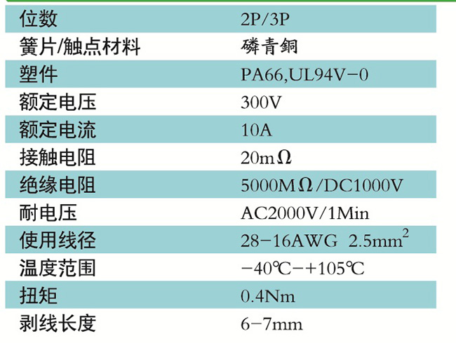 接線端子的絕緣材料用改性的尼龍(PA66),能達(dá)到或超過IEC947-7-1EN60947-7-1標(biāo)準(zhǔn),阻燃等級(jí)達(dá)到UL94V-0具有良好的電氣性能和機(jī)械性能。螺絲用高強(qiáng)度的鋼制成鍍鋅或鎳處理,導(dǎo)電體四方針用合金銅制成表面鍍錫,壓片采用彈性及極強(qiáng)的磷青銅表面鍍錫或鎳;壓線框用抗應(yīng)力裂縫腐蝕的合金銅制成,這些金屬表面還鍍錫或鍍鎳加以保護(hù)。設(shè)計(jì)完全符合IEC60947-7-1.GB14048.7等標(biāo)準(zhǔn)。